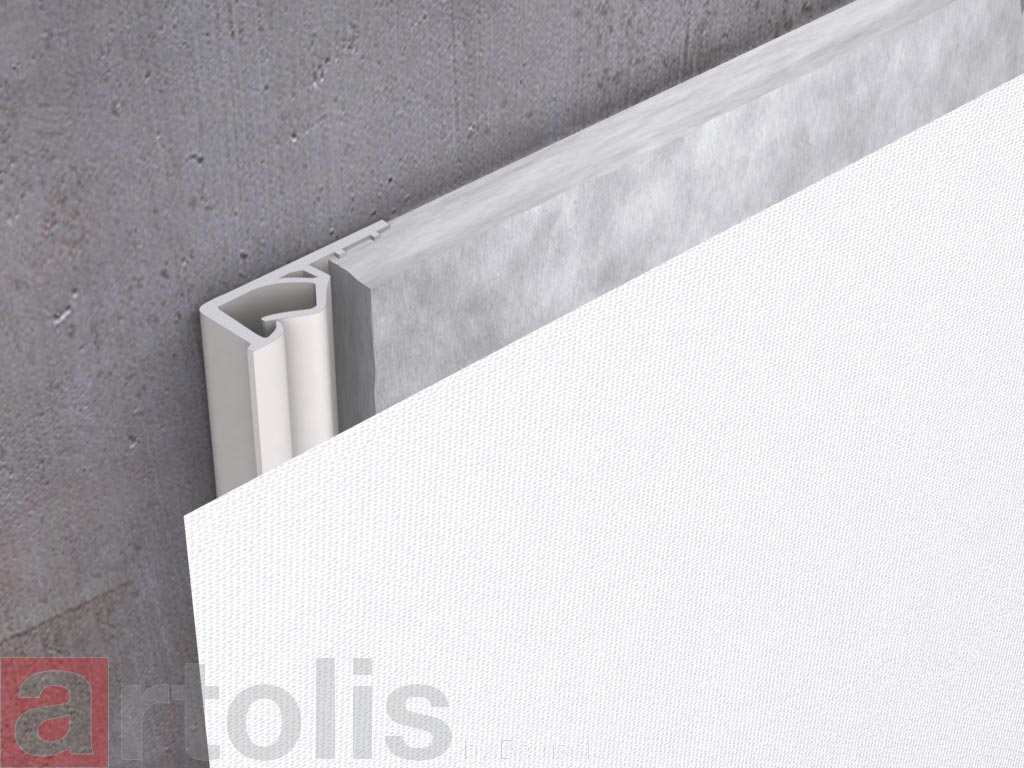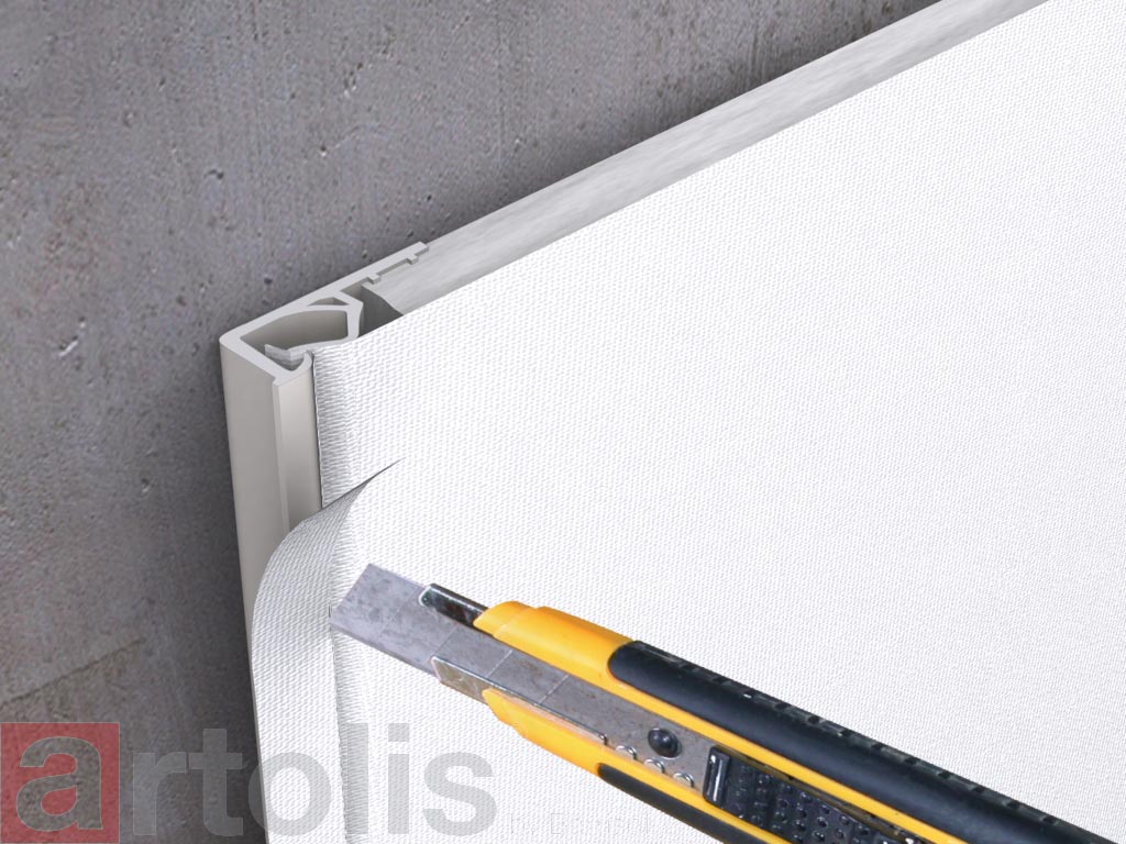 Grâce à un profilé de fixation périphérique, la toile artolis® se tend facilement sans colle, sans poussière ni gravats. La pose est rapide, propre et réalisée à température ambiante.